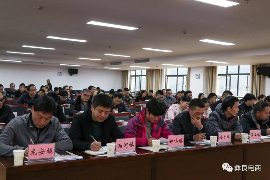 2018年11月05日上午八點半,彝良縣2018年度電商扶貧暨電子商務進農村綜合示范項目動員大會、彝良縣黨政領導干部電子商務進農村知識培訓會在彝良縣政府十三樓會議室召開。彝良縣縣委常委、副縣長羅小勇,彝良縣副縣長羅軍,縣政府各部門主要負責人,彝良縣電商辦,縣電商協會會長,15個鄉(xiāng)鎮(zhèn)的主要負責人,彝良天度電子商務有限公司,彝良縣電子商務公共服務基地主要負責人等共計130余名同志參加了本地會議。