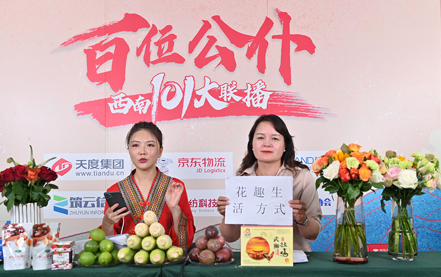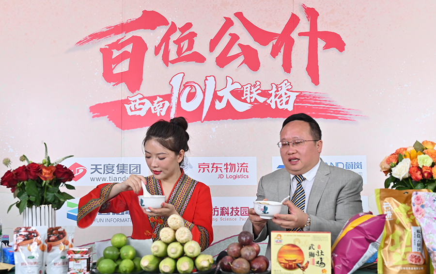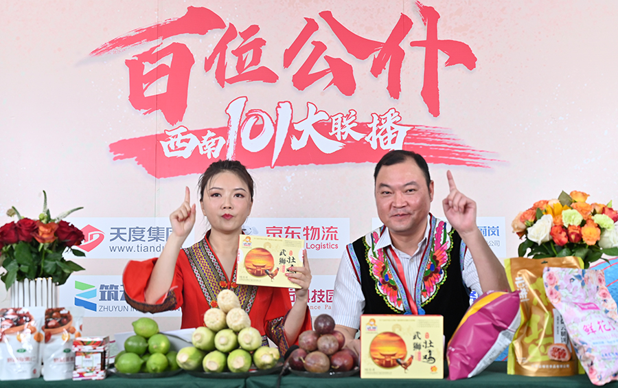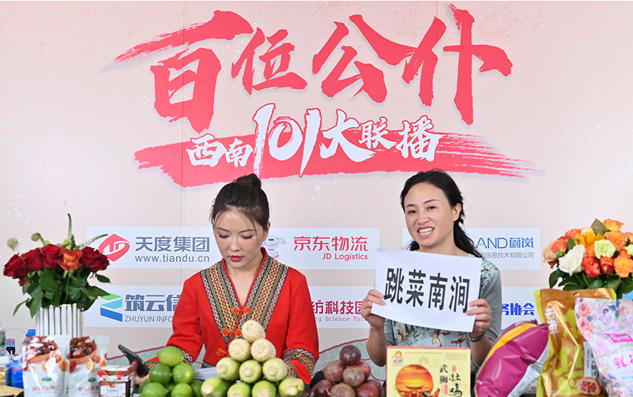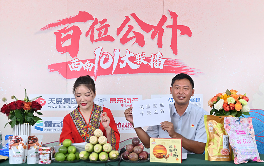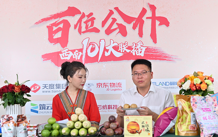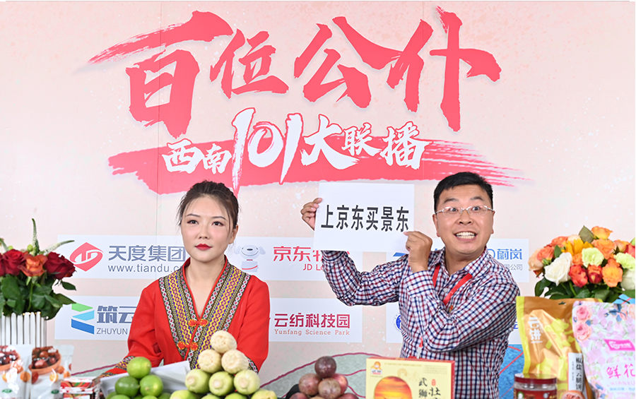 6月17日下午,“百位公仆,西南101大聯(lián)播”大型助農(nóng)直播活動在云紡科技園直播基地舉行,來自云南巍山、南澗、水富、個舊、開遠(yuǎn)、彝良、武定、景東、景谷等縣(市)的11位副縣(市)長,與四川知名電視主持人、直播記者郭秀一同走進(jìn)直播間,同框出鏡,為云南各地好貨代言,推動農(nóng)產(chǎn)品推廣上行,助力脫貧攻堅。近3小時的直播中,特色的農(nóng)產(chǎn)品、實惠的價格,以及豐厚的贈品吸引了260多萬網(wǎng)友圍觀。