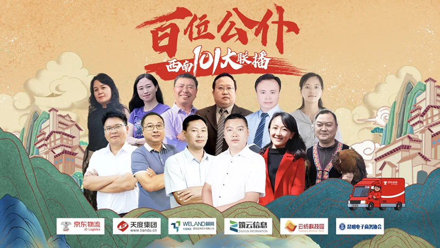 “百位公仆,西南101大聯(lián)播”大型助農(nóng)直播活動由京東物流主辦,天度集團(tuán)-云南蔚嵐信息技術(shù)有限公司、云南筑云信息產(chǎn)業(yè)有限公司承辦,云南云紡科技產(chǎn)業(yè)園有限公司、昆明電子商務(wù)協(xié)會協(xié)辦。