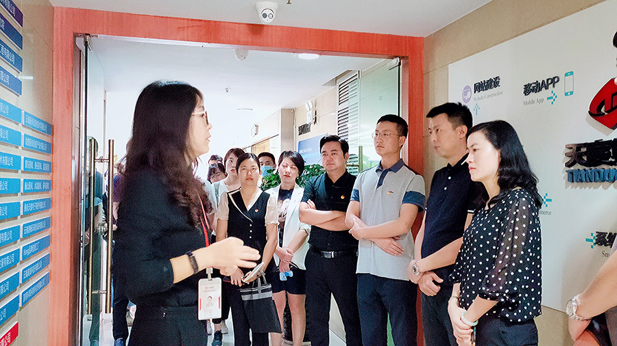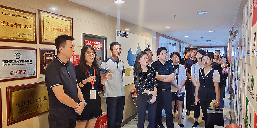 2020年7月7日下午,共青團(tuán)臨滄市委書(shū)記丁玲一行15人在共青團(tuán)昆明市委副書(shū)記林勤同志及共青團(tuán)西山區(qū)委書(shū)記吳陽(yáng)青同志的陪同下來(lái)到天度集團(tuán),圍繞青年電商創(chuàng)業(yè)、直播帶貨、電商扶貧等內(nèi)容進(jìn)行考察交流