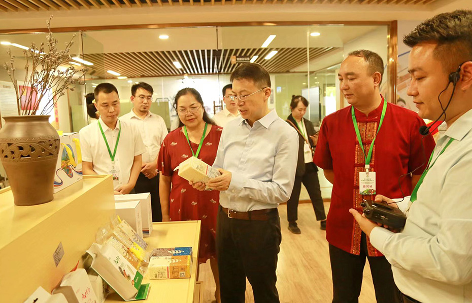 發(fā)布會前,徐健斌副州長還為“西雙版納州電子商務公共服務中心”新址揭牌,并參觀了該中心的展示區(qū)、功能區(qū)等。徐健斌副州長表示,要充分運營好區(qū)域公共品牌,統(tǒng)一規(guī)范、統(tǒng)一標準、統(tǒng)一形象,帶動更多本地產(chǎn)品走出去。