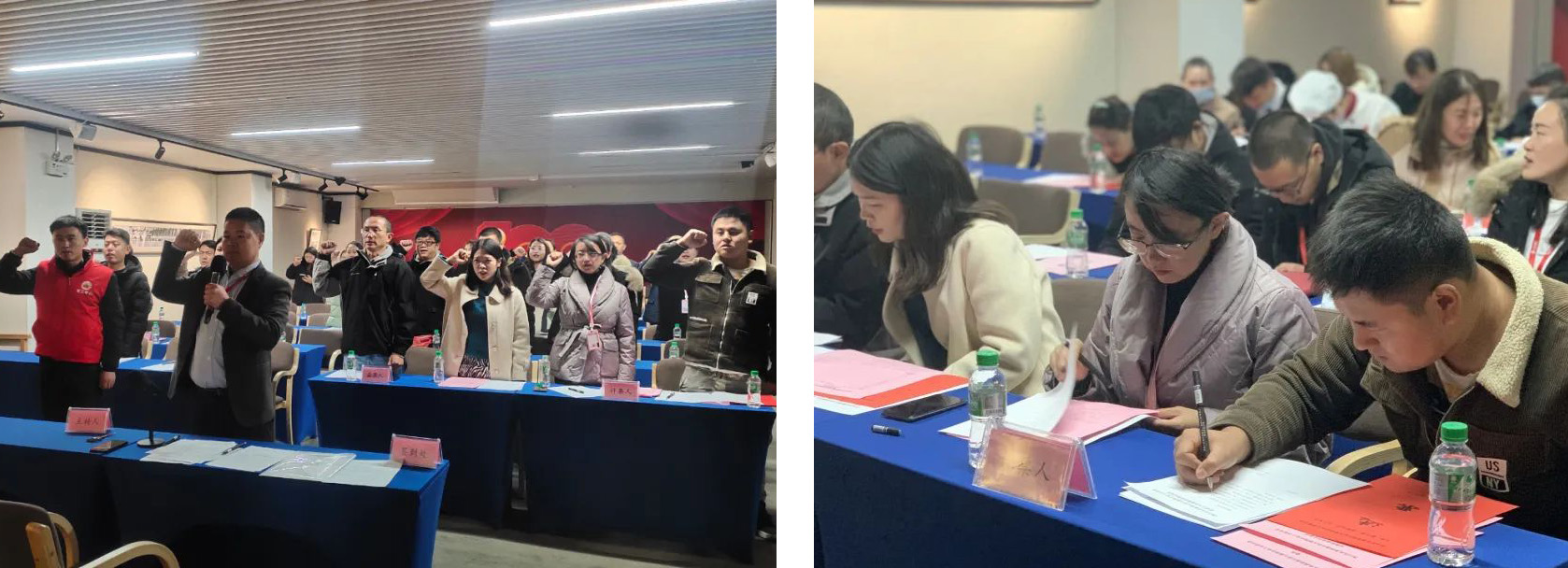 2021年11月12日上午,在云紡博物館學術報告廳,舉行了“昆明市西山區(qū)永昌街道云紡互聯(lián)網企業(yè)工會聯(lián)合會成立暨第一次會員代表大會”,會上選舉產生了工會聯(lián)合會第一屆委員會,由云南天度科技股份有限公司文明同志擔任主席、云南獵狐網絡科技有限公司王良惠同志擔任副主席、云南天度科技股份有限公司楊利銀同志擔任女工委員。新任工會主席文明同志帶領大家宣誓并講話。