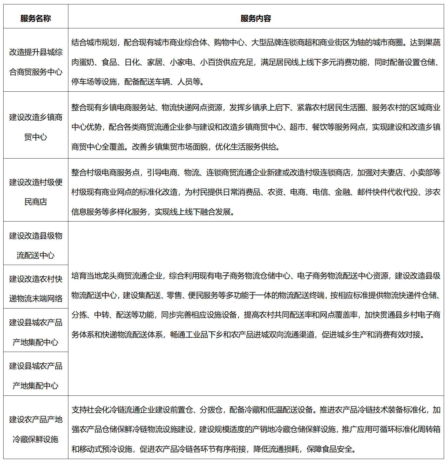 縣域商業(yè)建設行動以完善縣鄉(xiāng)村商業(yè)網絡體系和農村物流配送 “三點一線”為重點,加快補齊農村商業(yè)設施短板,引導商貿流通企業(yè)轉型升級,推動縣域商業(yè)高質量發(fā)展。完善縣域統籌,以縣城為中心、鄉(xiāng)鎮(zhèn)為重點、村為基礎的農村商業(yè)體系。基本實現縣城有連鎖商超和快遞物流配送中心、鄉(xiāng)鎮(zhèn)有商貿中心和物流配送站、村村有連鎖便利店并通快遞,農產品現代流通體系趨于完善,工業(yè)品下鄉(xiāng)和農產品進城雙向流通渠道更加暢通,農村居民收入和農村消費持續(xù)提升。
