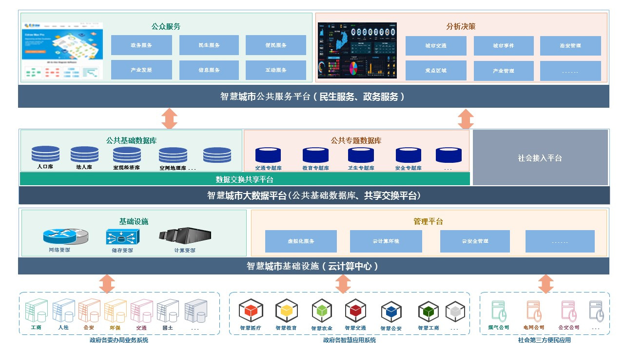 依托互聯(lián)網(wǎng)、云計(jì)算、大數(shù)據(jù)、物聯(lián)網(wǎng)、空間地理信息等現(xiàn)代科技和信息化手段,強(qiáng)化信息資源跨界融合運(yùn)用,大力推進(jìn)跨部門(mén)、跨系統(tǒng)、跨行業(yè)的數(shù)字資源利用,匯聚政務(wù)、企業(yè)、個(gè)人、感知等數(shù)據(jù)及資源,及時(shí)感測(cè)、收集、分析和運(yùn)用城市及產(chǎn)業(yè)信息,解決交通擁堵、預(yù)警滯后、環(huán)境污染、資源分配失衡、人口膨脹、城市脆弱等一系列“城市病”;通過(guò)數(shù)據(jù)治理形成城市人口、法人、宏觀經(jīng)濟(jì)、地理空間等基礎(chǔ)數(shù)據(jù)庫(kù)和各行業(yè)專(zhuān)項(xiàng)數(shù)據(jù)庫(kù),達(dá)到城市數(shù)據(jù)縱向清晰、橫向關(guān)聯(lián),深度分析與挖掘城市數(shù)據(jù),為民生應(yīng)用、企業(yè)發(fā)展、政府決策提供智慧支撐, 推進(jìn)城市規(guī)劃、建設(shè)、運(yùn)行、服務(wù)、綜合管理、應(yīng)急處置智能化。