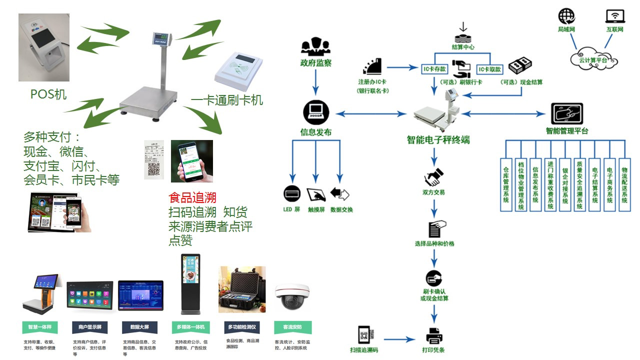 利用物聯(lián)網(wǎng)、云計(jì)算、大數(shù)據(jù)、人工智能、區(qū)塊鏈等信息技術(shù),為市場(chǎng)配備了智慧電子稱(chēng)、商戶(hù)屏、攝像監(jiān)控等設(shè)備及智慧管理平臺(tái),涵蓋“市場(chǎng)、商戶(hù)、物業(yè)、經(jīng)營(yíng)、場(chǎng)務(wù)、數(shù)據(jù)、設(shè)備”各方面管理,實(shí)現(xiàn)市場(chǎng)可管控、可感知、可追溯、合同電子化、收費(fèi)智能化、運(yùn)營(yíng)智慧化、數(shù)據(jù)一體化,極大降低了人工成本。利用AI技術(shù),實(shí)現(xiàn)水電、停車(chē)、人員、防疫等的智能管理,促進(jìn)市場(chǎng)有序高效運(yùn)行,同時(shí)大數(shù)據(jù)實(shí)時(shí)記錄公開(kāi)透明,產(chǎn)品價(jià)格、農(nóng)殘檢測(cè)、產(chǎn)品溯源、商戶(hù)證照信息一目了然,交易可追溯,讓老百姓的"菜籃子”拎得更舒心、放心、開(kāi)心。