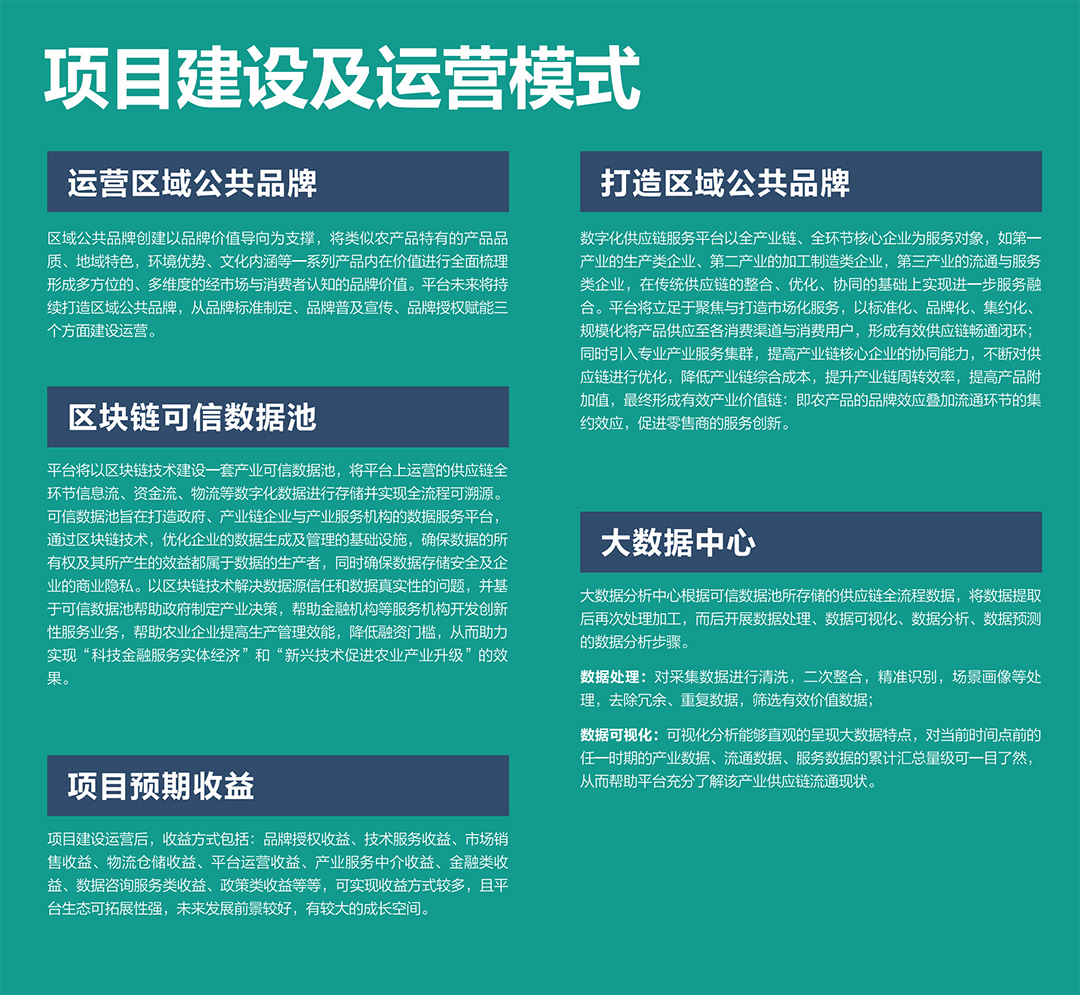 平臺(tái)將以區(qū)塊鏈技術(shù)建設(shè)一套產(chǎn)業(yè)可信數(shù)據(jù)池,將平臺(tái)上運(yùn)營(yíng)的供應(yīng)鏈全環(huán)節(jié)信息流、資金流、物流等數(shù)字化數(shù)據(jù)進(jìn)行存儲(chǔ)并實(shí)現(xiàn)全流程可溯源??尚艛?shù)據(jù)池旨在打造政府、產(chǎn)業(yè)鏈企業(yè)與產(chǎn)業(yè)服務(wù)機(jī)構(gòu)的數(shù)據(jù)服務(wù)平臺(tái),通過(guò)區(qū)塊鏈技術(shù),優(yōu)化企業(yè)的數(shù)據(jù)生成及管理的基礎(chǔ)設(shè)施,確保數(shù)據(jù)的所有權(quán)及其所產(chǎn)生的效益都屬于數(shù)據(jù)的生產(chǎn)者,同時(shí)確保數(shù)據(jù)存儲(chǔ)安全及企業(yè)的商業(yè)隱私。以區(qū)塊鏈技術(shù)解決數(shù)據(jù)源信任和數(shù)據(jù)真實(shí)性的問(wèn)題,并基于可信數(shù)據(jù)池幫助政府制定產(chǎn)業(yè)決策,幫助金融機(jī)構(gòu)等服務(wù)機(jī)構(gòu)開(kāi)發(fā)創(chuàng)新性服務(wù)業(yè)務(wù),幫助農(nóng)業(yè)企業(yè)提高生產(chǎn)管理效能,降低融資門檻,從而助力實(shí)現(xiàn)“科技金融服務(wù)實(shí)體經(jīng)濟(jì)”和“新興技術(shù)促進(jìn)農(nóng)業(yè)產(chǎn)業(yè)升級(jí)”的效果。
