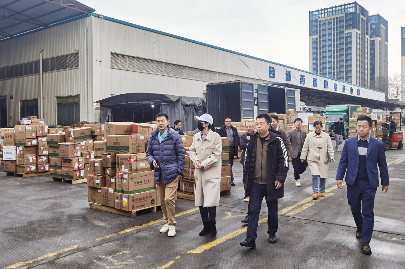 14日下午,考察團(tuán)到達(dá)此次考察交流的第一站,四川合縱藥易購醫(yī)藥股份有限公司電商基地,受到了四川合縱藥易購醫(yī)藥股份有限公司董事、高級(jí)副總裁李宇欣帶領(lǐng)的相關(guān)管理團(tuán)隊(duì)的熱情接待。四川合縱藥易購醫(yī)藥股份有限公司是中國首家醫(yī)藥產(chǎn)業(yè)互聯(lián)網(wǎng)上市企業(yè),是一家數(shù)智醫(yī)藥大健康生態(tài)型企業(yè)。業(yè)務(wù)涵蓋醫(yī)藥新零售、醫(yī)藥B2B電商、數(shù)字化賦能、醫(yī)藥批發(fā)、醫(yī)藥公共服務(wù)、醫(yī)藥供應(yīng)鏈、智能物流、C端矩陣、互聯(lián)網(wǎng)醫(yī)療、醫(yī)藥健康金融、大健康管理等眾多板塊。為全產(chǎn)業(yè)鏈合作企業(yè)提供優(yōu)質(zhì)產(chǎn)品、先進(jìn)平臺(tái)、豐富資源、創(chuàng)新技術(shù)與完善服務(wù),助力生態(tài)伙伴加速增長與永續(xù)發(fā)展,共同構(gòu)建數(shù)智醫(yī)藥大健康產(chǎn)業(yè)鏈新生態(tài)。