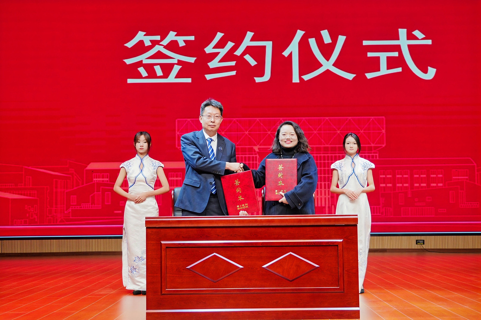 在全體參會(huì)人員的見證下,劉相校長(zhǎng)與胡婷婷總經(jīng)理分別代表校企雙方簽署合作辦學(xué)協(xié)議。楊紅衛(wèi)董事長(zhǎng)與鄭桂文董事長(zhǎng)共同為“天度數(shù)字商務(wù)產(chǎn)業(yè)學(xué)院”揭牌,正式開啟產(chǎn)教融合協(xié)同育人新征程。