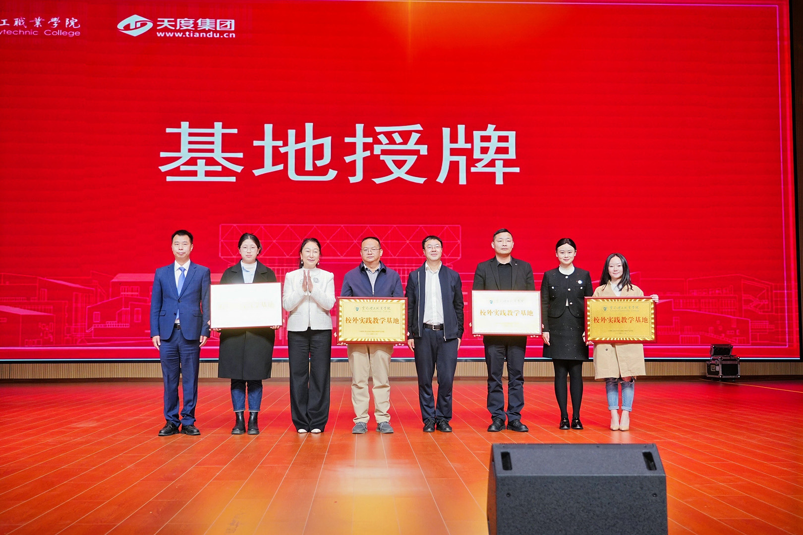 12月5日,云南理工職業(yè)學(xué)院天度數(shù)字商務(wù)產(chǎn)業(yè)學(xué)院簽約揭牌儀式在學(xué)生會(huì)堂隆重舉行。此次簽約標(biāo)志著云南理工職業(yè)學(xué)院與云南天度投資集團(tuán)強(qiáng)強(qiáng)聯(lián)手,共同開啟職業(yè)教育產(chǎn)教融合新篇章。