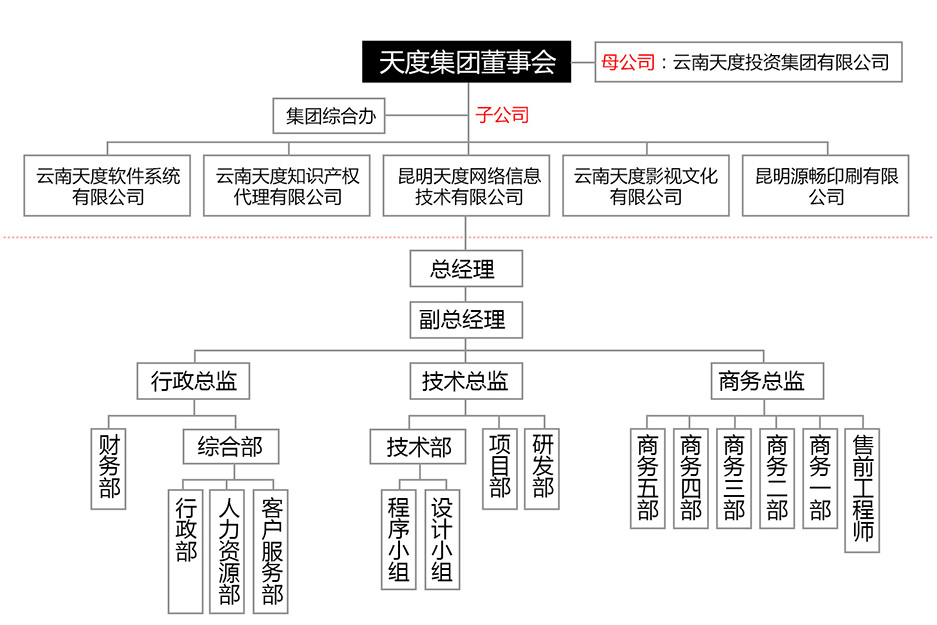 云南天度集團(tuán)及天度網(wǎng)絡(luò)公司組織架構(gòu)圖:
