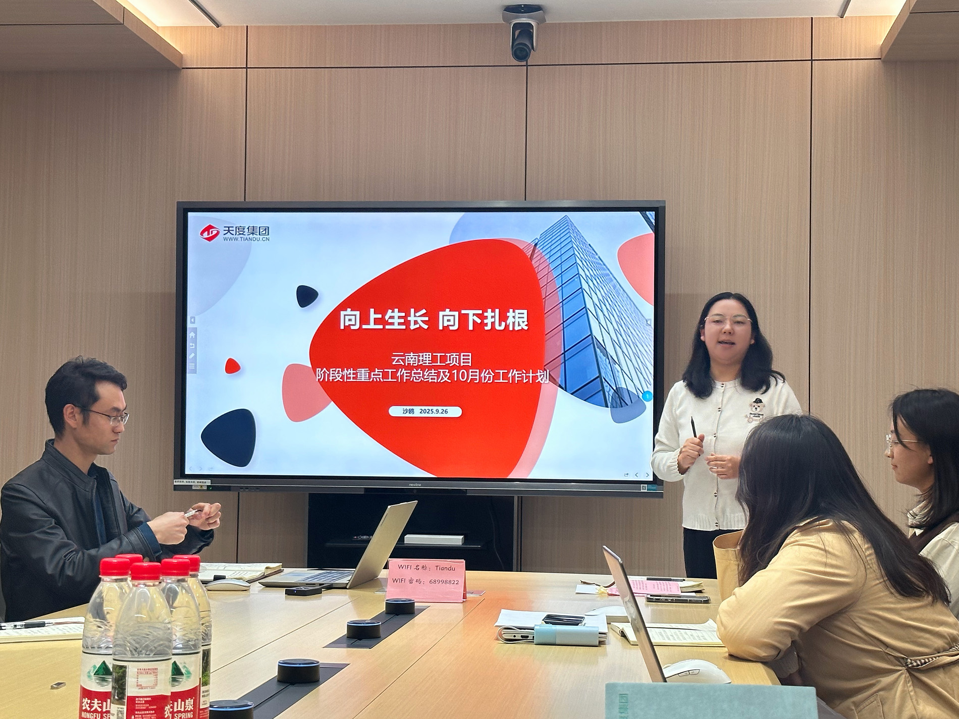 9月26日,云南天度科技產(chǎn)業(yè)發(fā)展有限公司階段總結(jié)暨工作部署會議在集團(tuán)總部順利召開。本次會議以“凝心聚力,共繪藍(lán)圖”為主題,系統(tǒng)梳理產(chǎn)教融合發(fā)展事業(yè)的前期工作成果,明確下一階段發(fā)展目標(biāo)與實施路徑。天度數(shù)字商務(wù)產(chǎn)業(yè)學(xué)院及高校校企合作項目的管理及教師團(tuán)隊齊聚一堂,集團(tuán)總經(jīng)理陳俊園出席會議并作重要工作安排部署。