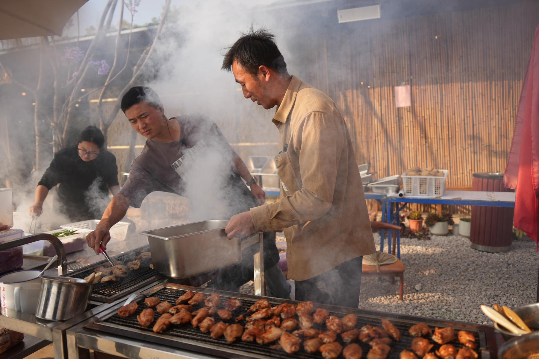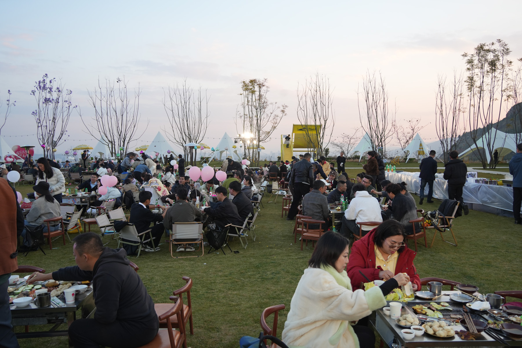 儀式過后,露天燒烤晚宴火熱開啟!美食美酒,暢敘情誼,大家盡情享受這場味覺盛宴。樂隊也從暖場伴奏轉(zhuǎn)為激情Live秀,《海闊天空》《追夢赤子心》等經(jīng)典旋律引發(fā)全場共鳴,點歌環(huán)節(jié)更讓現(xiàn)場成為歡樂的海洋。